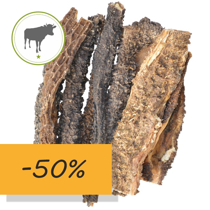 Nur solange Vorrat reicht Der getrocknete Rinderpansen ist etwa 12-15cm lang und ein herzhafter Leckerbissen für unsere Lieblinge! Die knackigen Stücke sind ein toller und schneller Happen für zwischendurch. Da der Rinderpansen nicht ganz so hart ist, freuen sich auch kleinere Hunde über Fieseln und Schlemmen.