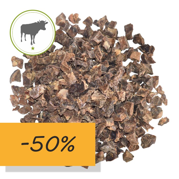 Vorteile: - kleine Stückchen - ca. 1-2cm - ganz leicht zu beissen - fettarm - leicht - äußerst beliebt und schmackhaft - proteinreich - schonend getrocknet - Zusatzstoffe: Keine