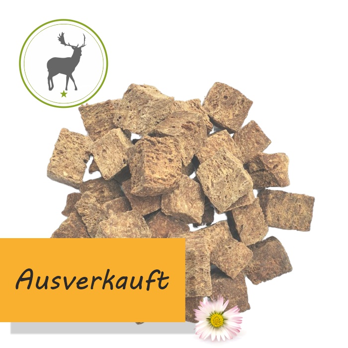 Wilde Leckerbissen aus 100% Wildfleisch. Die Wildwürfel sind ca. 3x3cm große luftgetrocknete knusprige Würfel. Toll für Hundeschule, Suchspiele im Wald, fürs Training oder einfach nur so.