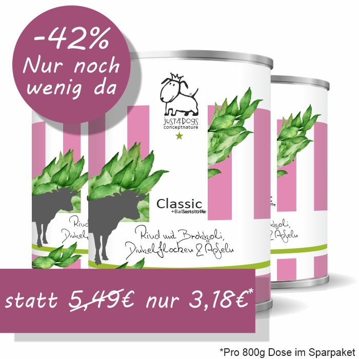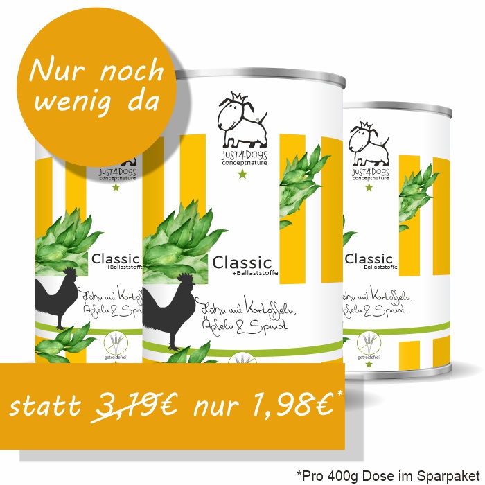 vielen Dank, dass Sie sich für die hochwertigen Produkte von just4dogs entschieden haben. Unser Hundefutter ist ein Manufakturprodukt mit einem hohen Maß an handwerklicher Arbeit. Wo Menschen arbeiten, können Fehler passieren und leider ist uns dieser beim Classic Lamm Menü in der 400g Dose passiert.